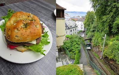 On the left, you see a picture from when my sister and I went to Godt Brød (organic bakery) on my last full day in Bergen, it's foccacia with garlic butter, pesto, roast beef and salad, yum!