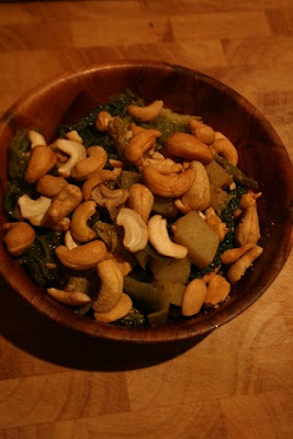 2 handfuls toasted cashews or other nuts (for vegan) or a poached egg to serve